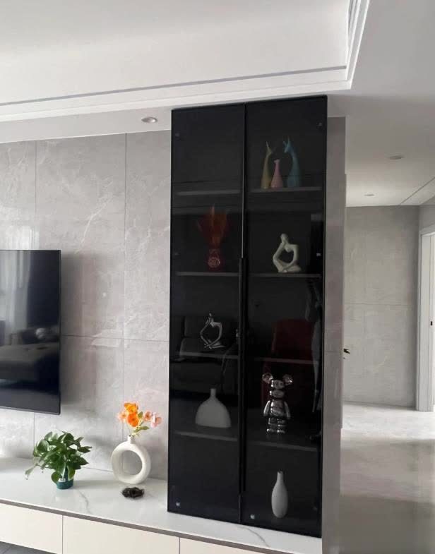 我爸花了1000+在背景墙上装了个玻璃柜,而且用的是黑色玻璃,我要不是离近看,都看不清里面是啥东西!!