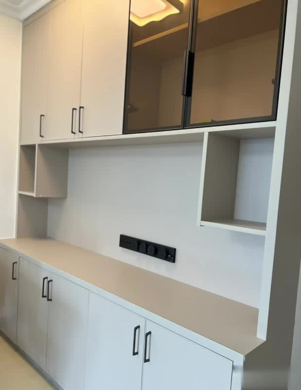 然而,老妈擅自做主,最后给我弄成这样,上面装个茶色的玻璃门,我也就忍了,下面这两个格子,我想问是做什么的?